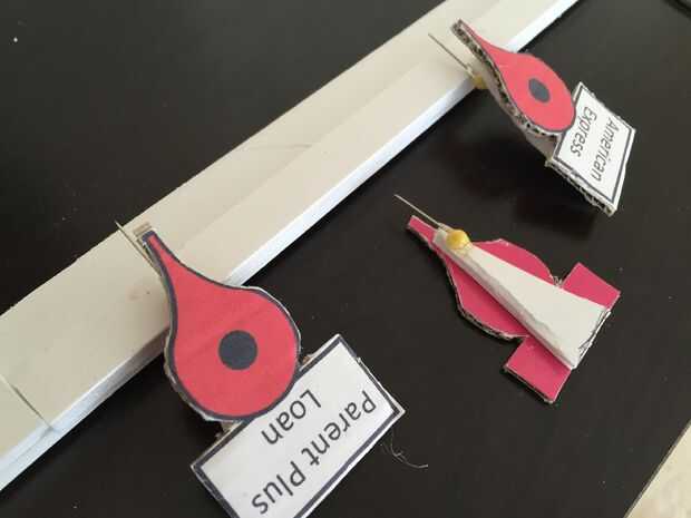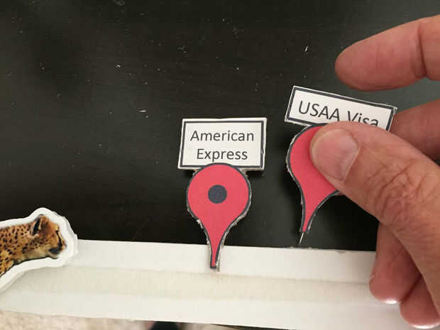 Una vez todo seco y fresco al tacto, empuje sus pernos de mapa en la pista para que el extremo puntiagudo de las clavijas de mapa se superponen el frente y los marcadores ir en la parte trasera, invisible. Organizar sus pernos en la secuencia que va a pagarlas. En mi caso, usé una tabla de bola de nieve de deuda para determinar qué pagaría primero, segundo, tercero, etc.. Dejar espacio a los pines a partir de finales y trabajando hacia el guepardo. Por lo que su deuda última va en el extremo derecho y su deudas terminan en la secuencia adecuada y espacio a la izquierda.