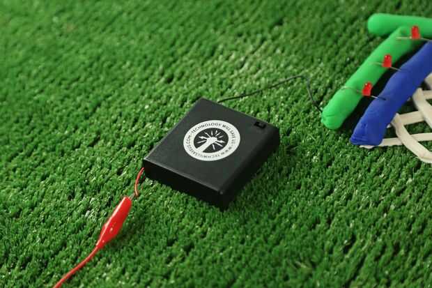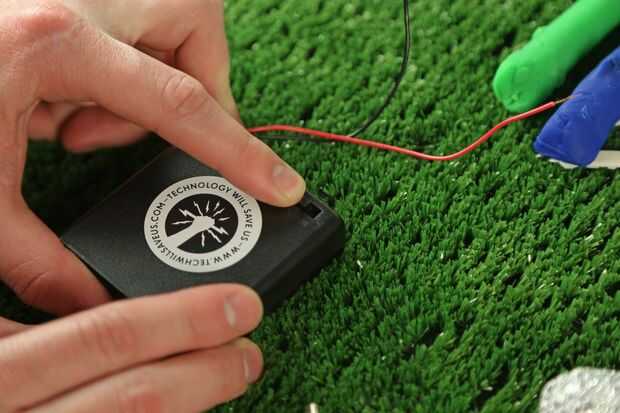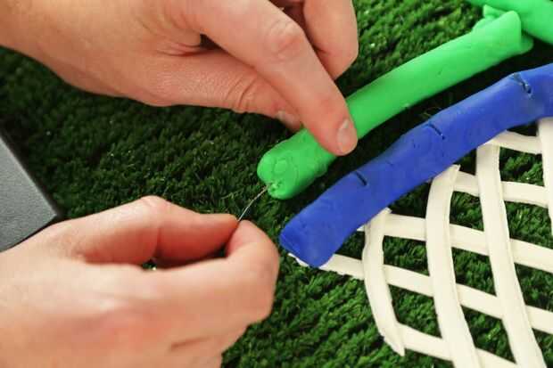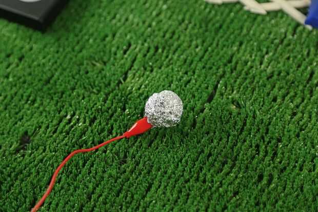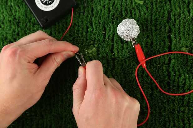 Molde una bola fuera de la hoja de la cocina y conecte el otro extremo de la pinza de cocodrilo.