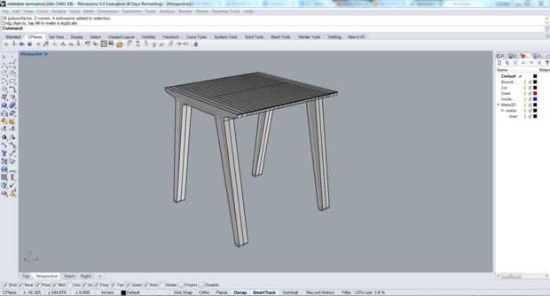 El diseño fue una simple protuberancia de madera con patas brotación de final laminación para apoyar la parte superior. El objetivo era crear algo tan simple y suave como sea posible usando el proceso del CNC, corte y apilado de materiales.