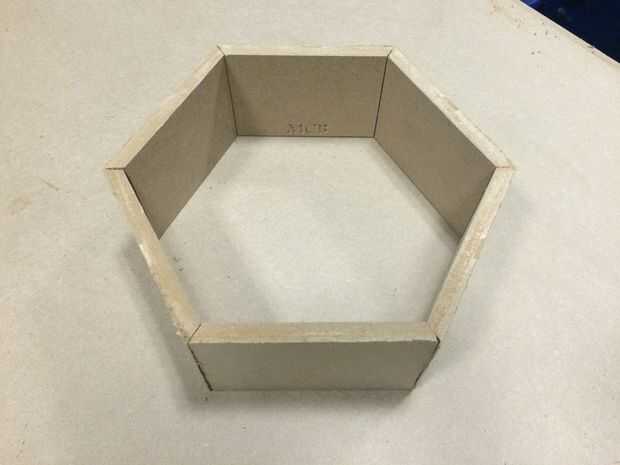 Estamos construyendo hexagonal "tchotchke estantes" con un pequeño grabado.