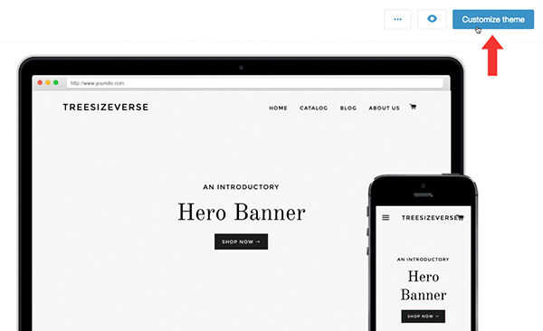 Desde la página de inicio de Shopify, ir a tienda en línea > temas > tema personalizar