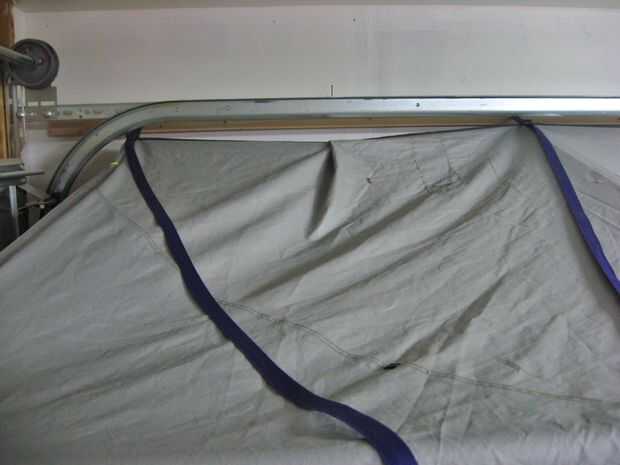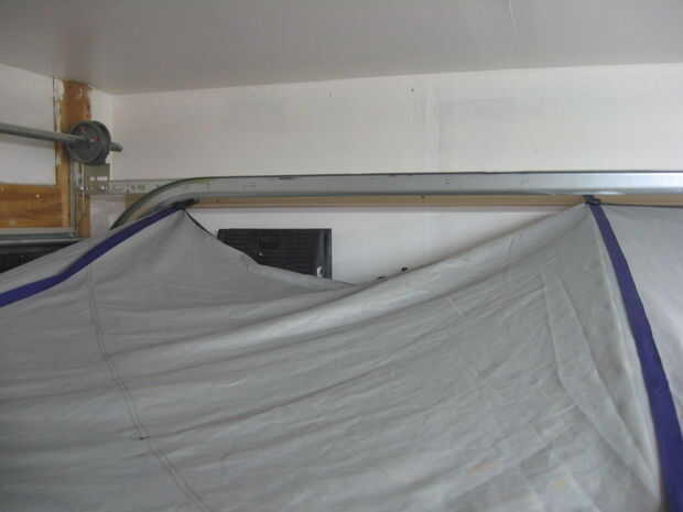 Sin embargo, la cubierta todavía frotado en la puerta de garaje sólo un poco al abrir y cerrar, así que añadí un poco de paracord para tirar abajo a una pulgada o tan. Esto solucionó el problema (Foto 3).