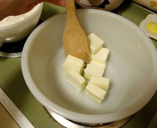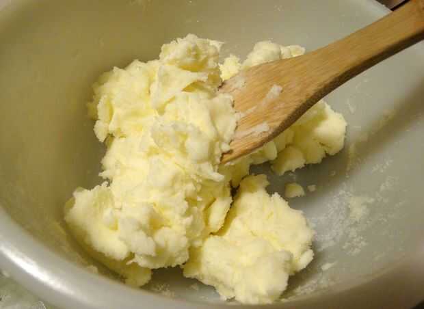 me gustaría dividir la mantequilla en rebanadas gruesas con una cuchara de madera, para hacer un poco más manejable al batir.