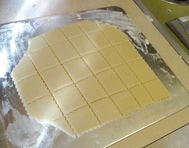 Ahora ejecutamos el arrugador perpendicular a su primer conjunto de líneas, crear una cuadrícula de. Estas son el tamaño de las galletas final.