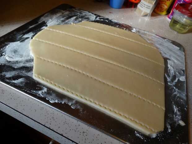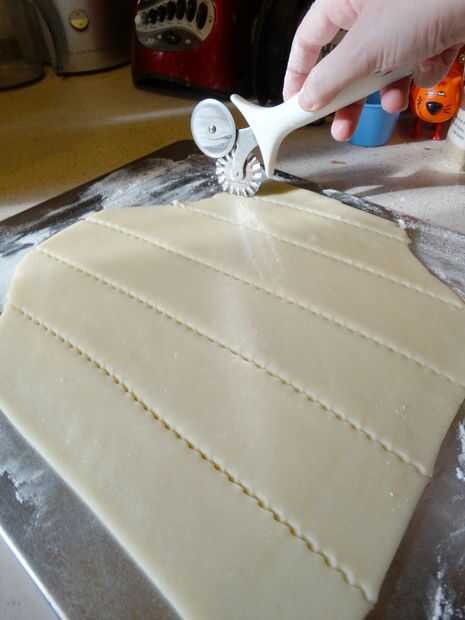 Siguiente, Utilice la cuchilla que prensa para ejecutar líneas a lo largo de su masa. La distancia entre líneas debe ser no menos de 1 pulgada, como secciones más pequeñas que esto son más propensas a quemarse.