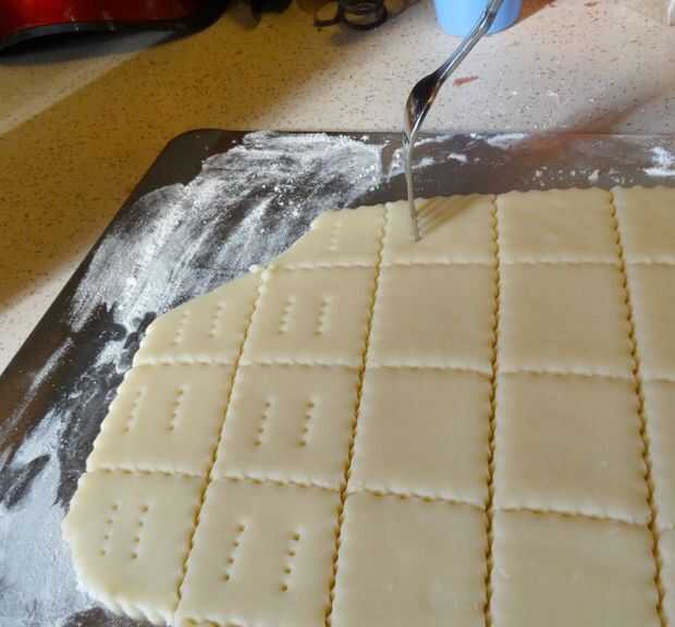 Por último, utilizar un tenedor de mesa para meter 2-3 filas de agujeros en cada cookie. Estos agujeros prevenir masa burbujeante y promoción un horneado uniforme.