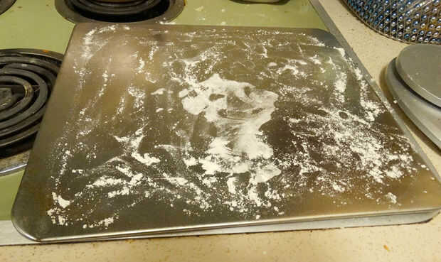 Ligeramente de harina la bandeja para hornear o piedra para hornear.
