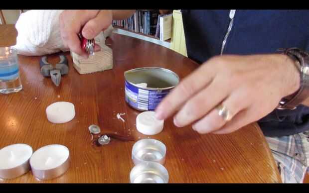 Los casos metal, mechas y los titulares de mecha de metal de 3 velas tealight de quitar y poner la cera en la lata de atún.