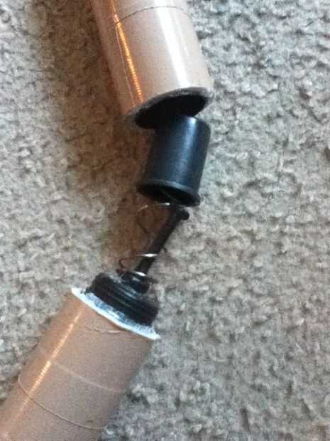 Para volver a cargar, retire con cuidado y lentamente la parte superior del bate en un ángulo. A continuación, presione el empujador de la primavera para que la varilla del centro pasa por y a cerradura de la torcedura. A continuación, vuelva a colocar la parte superior del palo e inserte siete dardos.