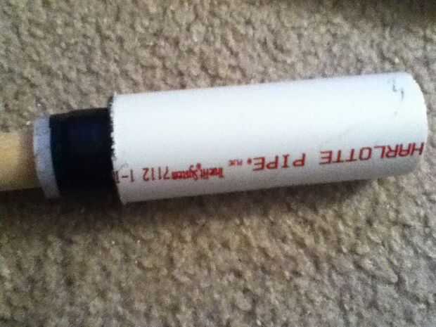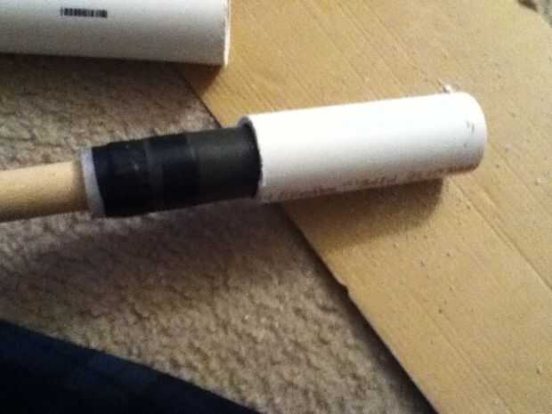 Prueba para asegurarse de que la sección menor del tubo se coloca sobre el popper del partido y sólo la rotura entre el torbellino de lo popper del partido y el tubo negro. Luego, quitar y agregar el pegamento al lado de la máquina del partido. Coloque el CPVC en el tubo otra vez tan sólo viene el hueco entre el tornado y la parte superior de la máquina. Los dardos no deben ser visibles.