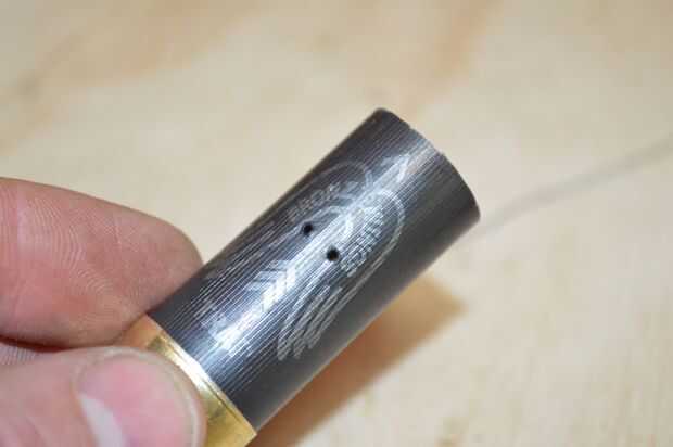 1. hacer 2 pequeños agujeros en el cuerpo de la cáscara. Asegúrese de que están por debajo de la tapa de vacíela.