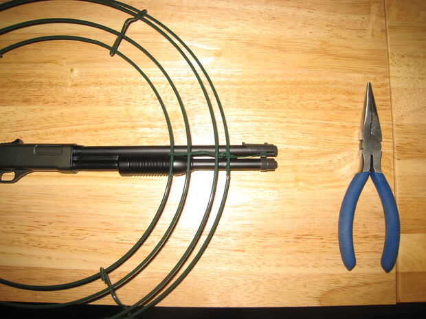 Os adjunto el cañón en una articulación que permite más lugares envolver el cable alrededor. Una vez que tenga el barril donde quieras y cableado, tuerza los alambres juntos para garantizar. Usar los alicates para obtener un giro muy apretado para el pasado pocos giros después de hacerlo a mano.