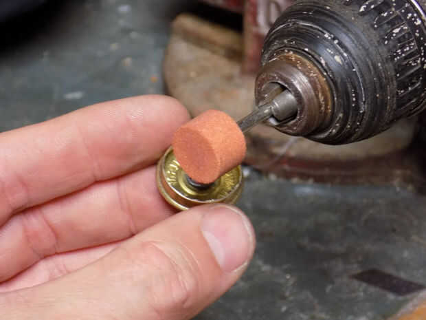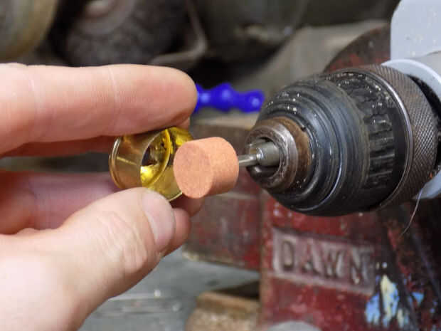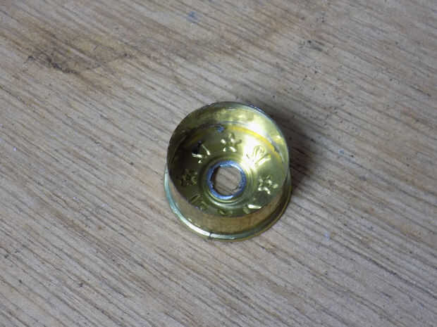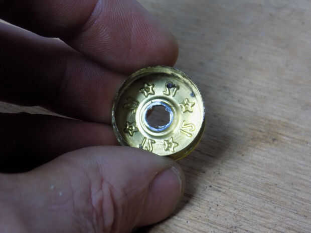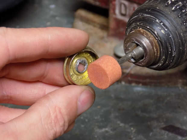 2. una vez retirado el plástico usted encontrará que hay algunas piezas puntiagudas de latón en el interior de la cabeza. Estos sostenga la tapa en su lugar. Se desea eliminar estos para que el interior quede a ras.