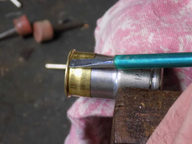 En orden para la tapa tapa caber dentro de la sección body del medallón, tendrá que ampliar la apertura. Hay probablemente otras formas de hacer esto pero encontré usando una toma un poco más grande que la tapa de apertura me permitió estirar la abertura suficiente. Usted no quiere tener la apertura demasiado apretado o demasiado flojo o no funcionará. Tómese su tiempo y usted será capaz de encontrar el punto dulce para la tapa