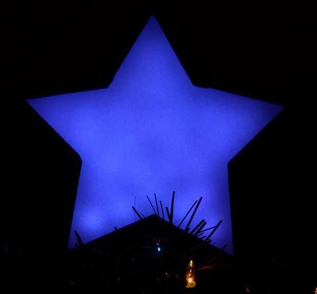 Este escaparate interior de árbol de Navidad animado utiliza una combinación de cinco WS2812 direccionable pixel LED pega la estrella. 16 LEDs de píxel individual ensartados por las luces del árbol de Navidad y una tira de LED verde cortado en tiras