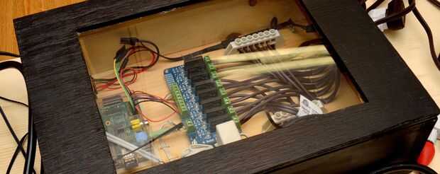 Para la parte superior que quería ser capaz de mirar dentro de la carcasa, había montado en un pedazo de 8.5 x 11 cristal (a partir de un marco de imagen) a la tapa y me utilizan Velcro en la parte superior de modo que rápidamente pude quitar la parte superior si es necesario. Una gran parte del recinto tiene 110 VAC expuestos por lo que es importante para la parte superior proporcionar una protección de alguien o algo accidentalmente hacer contacto.
