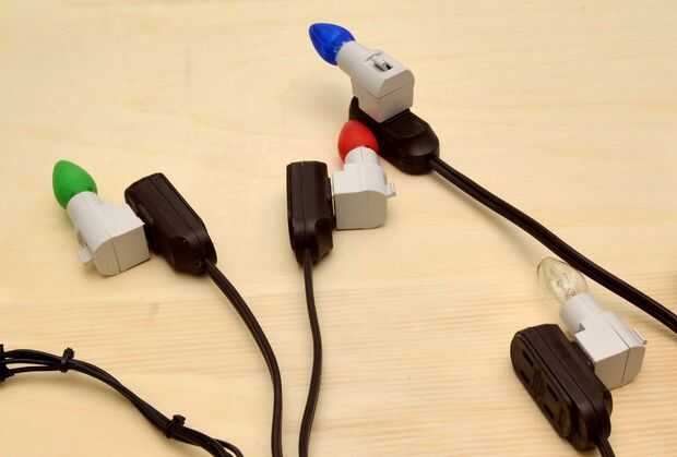 En lugar de enganchar las cadenas completos de luces de Navidad me enganchado las luces de noche de barato $1 a cada cable de extensión para probar y desarrollar las animaciones antes de que el árbol era para arriba. Pinté las luces conectadas a los cables que controlarían el rojo, verde, azul claro cuerdas.