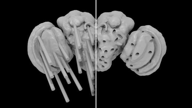 Una vez que haya un número razonable de esferas, tiempo para decidir cómo alimentar las fibras en el modelo.