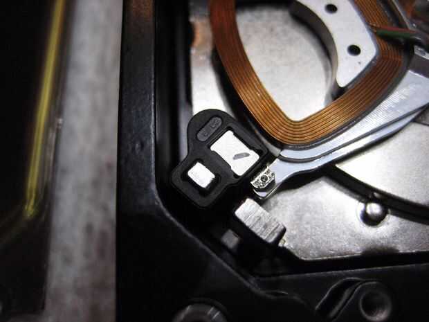 Es necesario quitar el imán "parking". Esto sólo es el brazo del actuador cuando no está leyendo o escribiendo datos. Cada coche es diferente pero esto es lo que parece en un cuatro años Hitachi Deskstar 1TB.