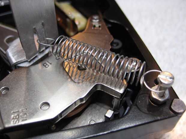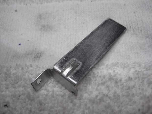 Necesita un resorte para mantener el brazo actuador centrado o su patrón de haz de láser no permanece centrado. Yo corte dos ranuras en la parte posterior del soporte con una Dremel y levantó el centro con un destornillador pequeño de punta plana para crear un punto de Unión para la primavera.