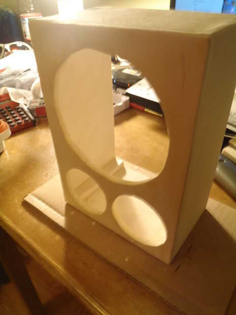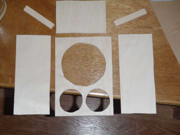 E. Pegue las piezas en una caja. Asegúrese de que los angulares son acostado contra la parte superior e inferior. No pegar en la parte posterior, esto pondrá en el último paso.