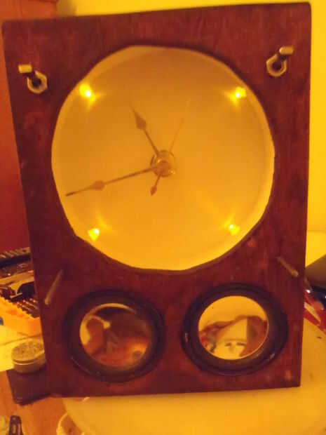 A. Insertar la cara del reloj, mantenga pulsado con el pegamento. Colocar el LED en su agujero y pégalo en el lugar.