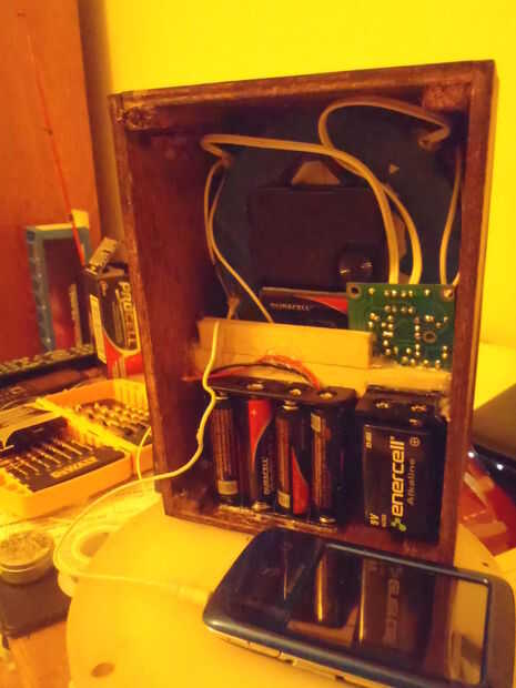 Asegúrese de que usted perfore un agujero para que el conector de teléfono puede pegarse hacia fuera. Quería que mi MP3 que se unirá a la cáscara así rama la "tira de comando" pegar en.