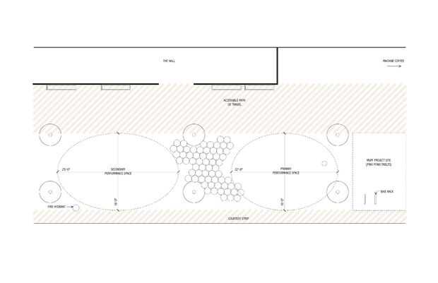 ShowBox pasó por numerosas iteraciones de diseño ante nuestro final amorfo, forma específica de sitio tomó forma. La disposición en niveles del diseño de los asientos del auditorio, junto con un deseo de crear un escalonamiento playspace calle. Esperábamos crear algo que mezcla con su entorno, creando un diálogo entre lo que es la acera y lo juego / etapa / asientos.