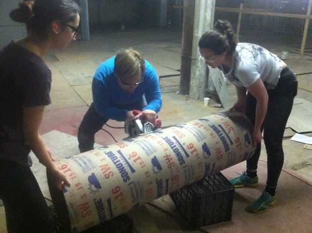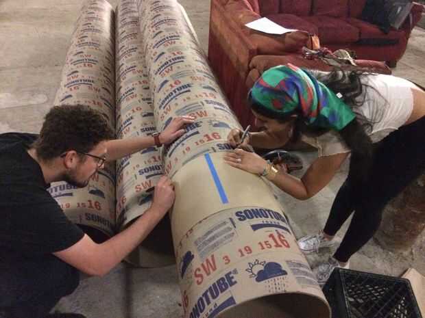 12' tubos fueron cortados a intervalos de 6" en las alturas de 1' - 5' para crear las 63 piezas finales.