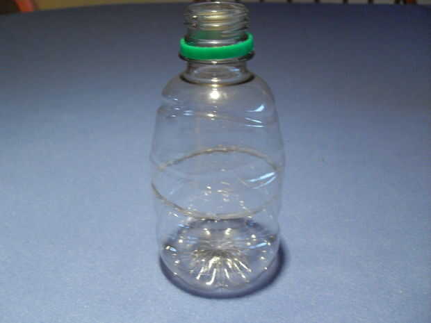 Línea de la parte superior de la botella con la parte inferior y hotglue junto. Asegúrese de que estén a nivel, y que hay no hay lagunas en su hotglue. No queremos agua en. Hacer esto para dos botellas.