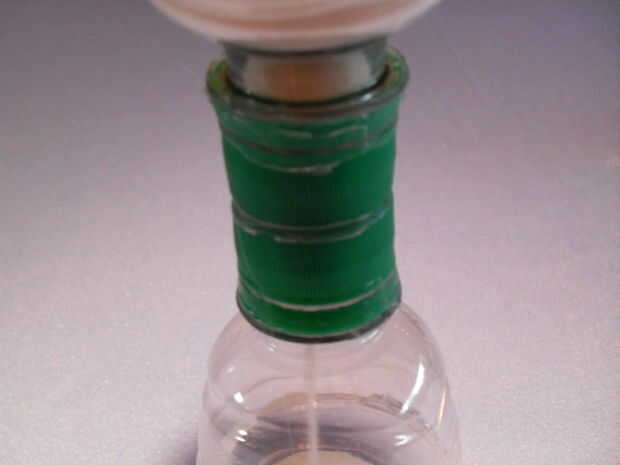 Pegar los tapones en las botellas, que estén apretados de agua y aire.