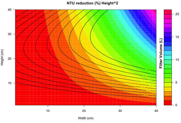 Porque el agua siempre debe ser limpia 100% o lo más cerca posible la tabla NTU reducción (%) por encima debe consultarse si usando diferentes dimensiones para el filtro. Significa NTU unidades de turbidez nefelométricas. Es una unidad de medida para la cantidad de partículas flotantes en el agua. El agua potable tiene un valor bajo de 10 NTU, generalmente alrededor de 4 y agua visiblemente contaminada tiene una NTU sobre 15-20. NTU se mide ópticamente o químicamente. Tenemos algunas ideas de diseño para un sensor de código abierto, o varios y quisiera algunos haciéndolos.