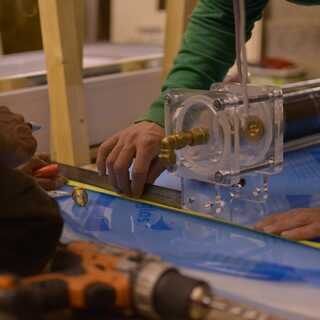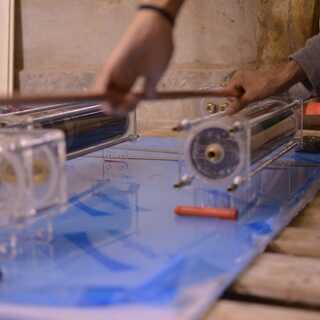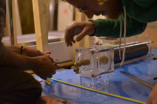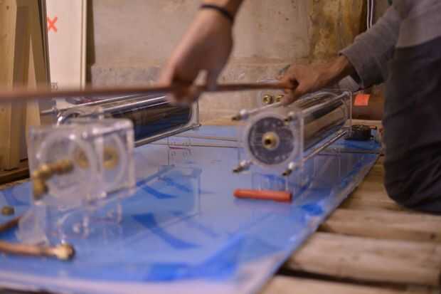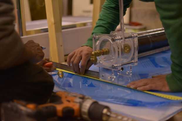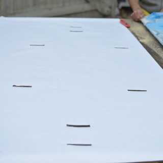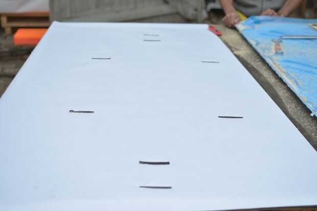 La colocación de los filtros fue dibujada en un material impermeable y corte de los agujeros donde van las placas de montaje a través.