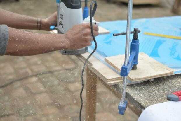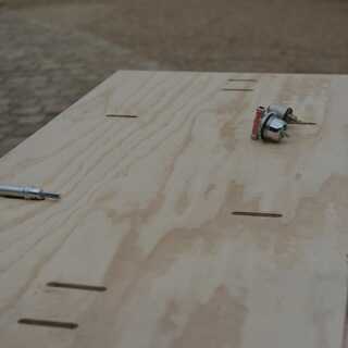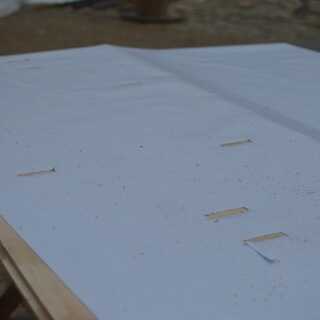 Extienda las líneas de corte en la parte superior la madera contrachapada (y abrazadera/tap lo hacia abajo)