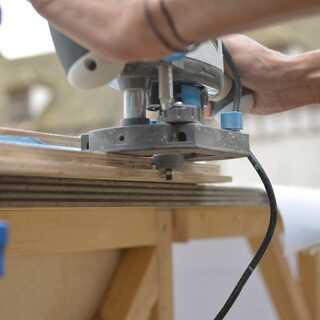 Para caber dentro del existente marco que tuve mi madera contrachapada de 20mm a mitad de camino en bisel. Por un pedazo recto de material en el borde de sujeción podría simplemente presiono contra él con el router mientras se mueve lateralmente para conseguir una limpieza y corte recto.