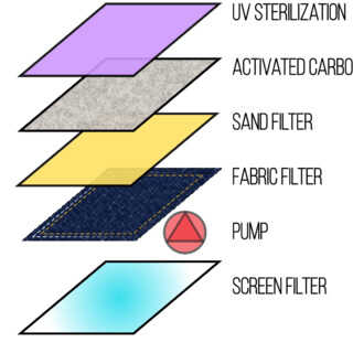 Por lo que los principales componentes del filtro de la bomba, filtro con el filtro de arena y carbón activado y la lámpara uv.