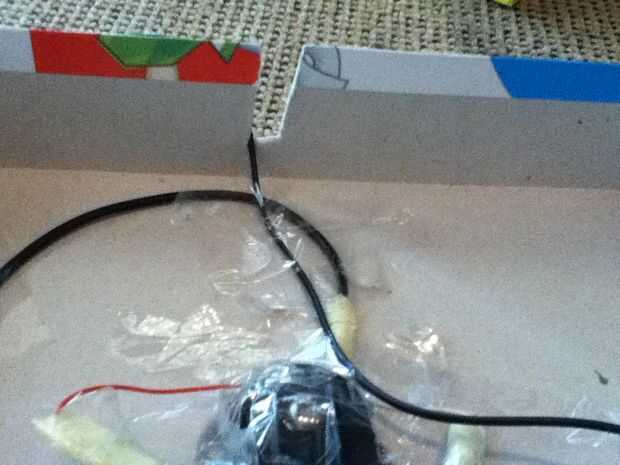 Enchufe el cable de alimentación de shox. Cortar un agujero para permitir que el cable de alimentación a