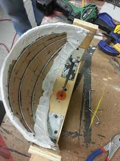 El mecanismo de abrir y cerrar se hizo de alambre, madera y soportes de estantería. He añadido que dos retorno resortes una vez que se montó dentro de la cabeza para que vuelvan a su estado abierto.