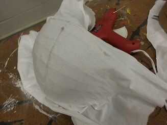 Los párpados eran especialmente complicados ya que tenían hecho con alambre y cartón para conseguir la forma correcta. Simplemente trabajé con tiras de 1" de ancho y cortar para han señalado extremos y cuidadosamente había doblada alrededor como había pegado al cable.