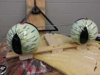 Los ojos son 8" acrílico globos de una fuente de iluminación de tienda en línea. Pinta la pupila y estrías en el interior y a continuación el interior entero con la luz verde de "blancos" de su ojo.
