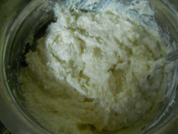 Tome la mezcla de queso en un bowl/recipiente y añadirle azúcar