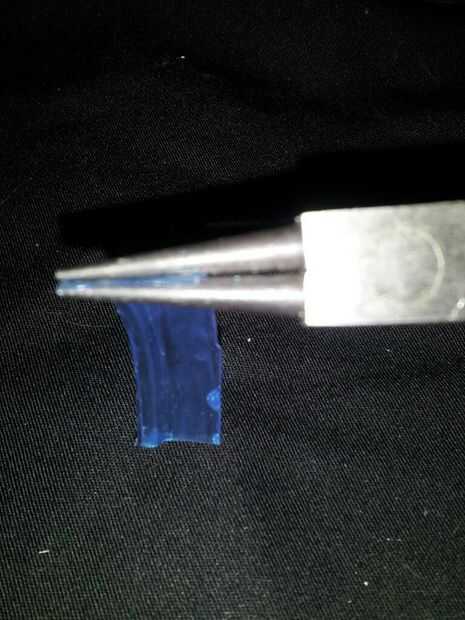Rollo una tira de plástico pintado encima en un círculo o un tubo manteniendo el borde de una tira de plástico en sus pinzas hasta el otro extremo.  Estoy usando un par de alicates de joyería, los más largos. Decidir si quiere el grano apretado o suelto, entonces reajustar sus alicates para sujetar a todas las capas de plástico, no sólo al final.