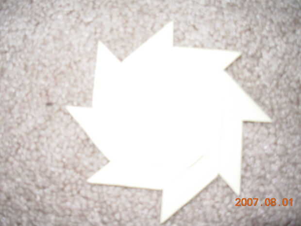 este shuriken de papel tarda más en hacer, requiere de más papel para hacer y no es tan robusto como el shuriken de papel estándar de 4 lados, pero parece mucho más impresionante. Lo malo de este shuriken es su dificultad para lanzar ya que se convierte en su lado inevitablemente no importa cómo se produce (lanzado efectivamente una buena distancia, no lame, tiro de 1 metro, cuyo único propósito era desmentir esta afirmación).