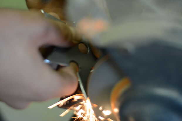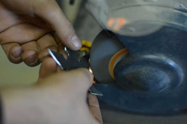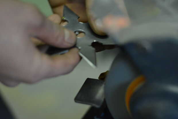 Desde aquí fue apagado a la amoladora de banco. Afilar los bordes ligeramente con cuidado manteniendo la estrella en un ángulo de 30 grados y ligeramente que la muela. Siempre debe usar gafas y guantes de seguridad y tenga extremo cuidado con todas estas herramientas.