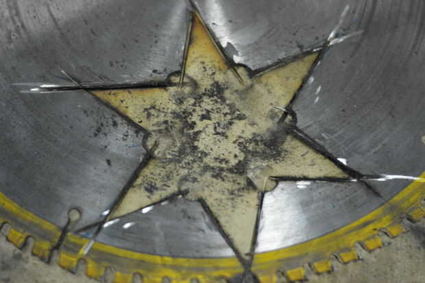 Finalmente limpia los bordes con una taza de alambre en el molino. Esta parte puede ir terriblemente mal si el molinillo se atrapa en la estrella - sólo uso esta herramienta si ya está familiarizado con él