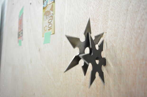 Sólo hacerlo si apuestas es legal donde usted está. Aquí mi buen amigo Steve y me cubrió grandes cuentas a un destino (madera contrachapada) y convierte desde una distancia de unos treinta pies. Si clavas un proyecto de ley podrá mantenerla. Esa es la regla de este juego. Tal ves, las reglas pueden ser buenas para usted y lanzando dardos puede ser muy divertido si se hace responsablemente.