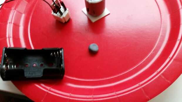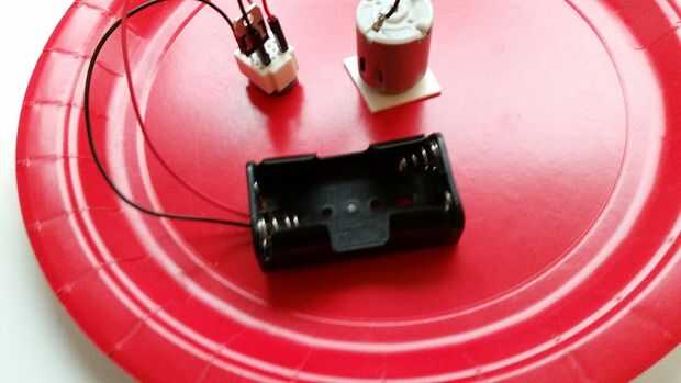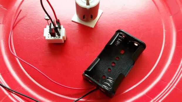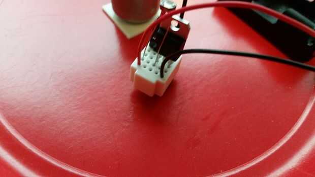 El cable rojo del soporte de la batería va en el agujero de la esquina superior izquierda de la placa, el cable negro va en la esquina inferior izquierda de la protoboard. Instale el soporte de la batería a la placa con una pequeña gota de tachuela pegajosa.