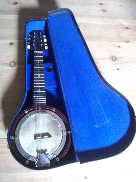 Un Banjolin (o mandolina-Banjo, en la forma original (Verifique la historia) de tener ocho cuerdas, de cuatro pares, de la misma manera exacta y tuning como una mandolina y violín - de hecho, que es lo que hay - una mandolina con el cuerpo de un Banjo. Gran :-)