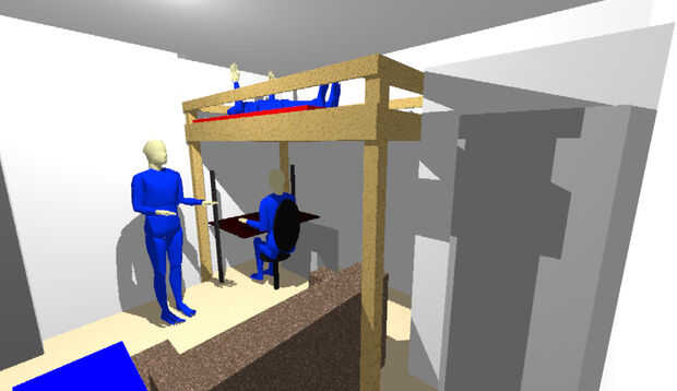 Quería que la cama para abarcar toda una pared para que las piernas no serían entrometerse en la habitación. Este requisito condujo a la necesidad de estructura más robusto que se extiende por más de una cama normal. También era necesario para mi buen gran escritorio de Ikea para sentarse en el otro extremo, como sería el espacio sólo está disponible para él - todavía estaba guardarlo en mi baño!!!!!! Lo que también está bien tener al lado de mi pequeño pasillo es que podré aguantar un 24" cheapo tele CRT de Ebay en el otro extremo de la cama para la visualización de tiempo de cama.