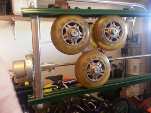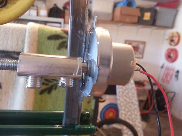 En este momento una hornada de epoxi mezclada y abundantemente cubierto las conexiones en el buje y el motor se trabe en su lugar. Estoy tratando de usar un imán fuerte para conectar la tuerca de acoplamiento con la dolly, pero allí no es suficiente fricción/cohesión utilizar el carro en ángulos distintos de nivel, por lo debe ser abordado.